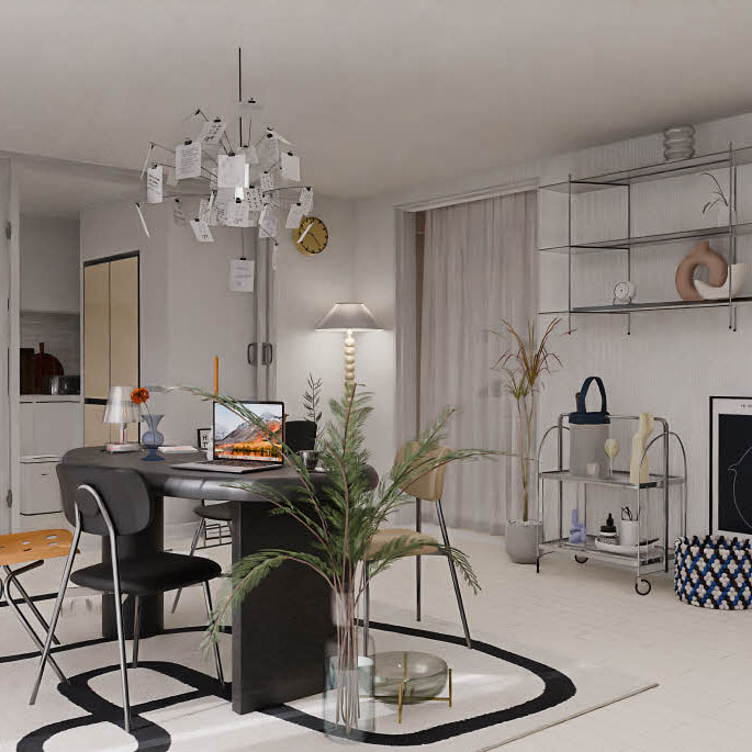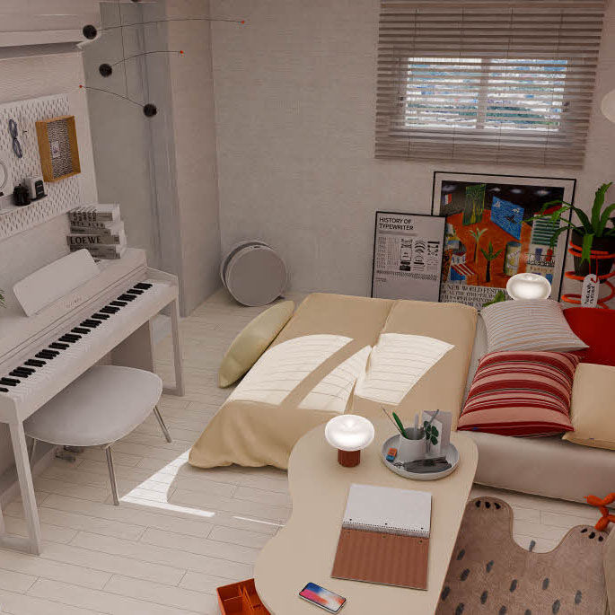 이번 공모전에서 제가 중점을 둔 부분은 새로운 라이프스타일과 취향을 1인 가구 도면에 그대로 담아내는 것이었습니다. 집에서 일하고, 사람을 만나고, 식사하고, 휴식하는 N잡러 디자이너의 집이란 어떤 모습일까 상상하며, 집이 단순한 쉼터를 넘어 창의적인 작업 공간이자 삶의 일부분이 될 수 있음을 표현하고자 했습니다. 첫 집을 장만하는 설렘을 상상하며 즐겁게 작업했습니다.